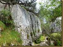 La settimana scorsa con Max sono andato un paio di giorni sull’Altopiano di Asiago, dove non eravamo mai stati. Il primo giorno, dopo al viaggio, siamo saliti ai Castelloni di San Marco e il giorno successivo ai Monti Caldiera e Ortigara, dove nel giugno del 1917 fu combattuta una violentissima battaglia. Abbiamo pernottato al rifugio Campomuletto, dove siamo stati trattati benissimo e Rinaldo, il gestore, è stato prodigo di informazioni sui vari percorsi e i vari progetti in cantiere per l’escursionismo sull’altopiano. La strada in parte sterrata (circa 6 km), che sale e termina al Piazzale Lozze, inizia dal paese di Gallio e corre in mezzo ad una magnifica foresta di abeti e larici. I Castelloni di San Marco è un bellissimo labirinto naturale situato in un ambiente molto suggestivo e quasi a strapiombo sulla Valsugana. Si tratta di un monte, sulla cui cima, le rocce carsiche modellate dagli agenti atmosferici e ritoccate dai soldati Italiani durante la Grande guerra, hanno formato una serie di camminamenti, di fessure, di inghiottitoi e di gallerie. Tutti questi percorsi sono intervallati da almeno un centinaio di incroci e bivi che danno origine ad un labirinto naturale, opportunamente tabellato dal CAI con dei segnavia numerati progressivamente dal 1 al 48. Sul cartello di inizio sentiero c’è scritto “per esperti”, mi sento di aggiungere “magri”, perché c’è qualche passaggio veramente stretto e fra lo zaino e un po’ di pancetta si passa a fatica.